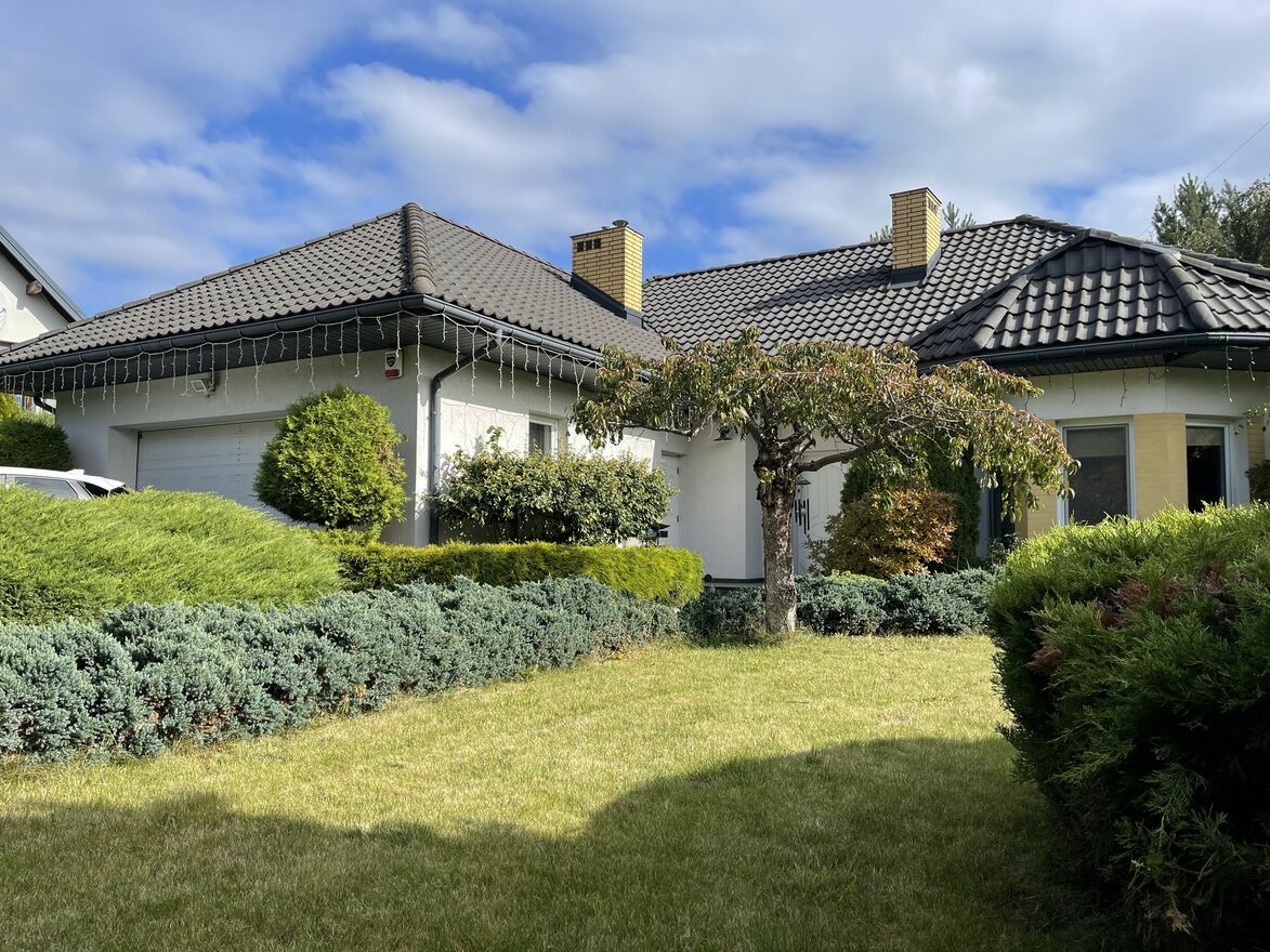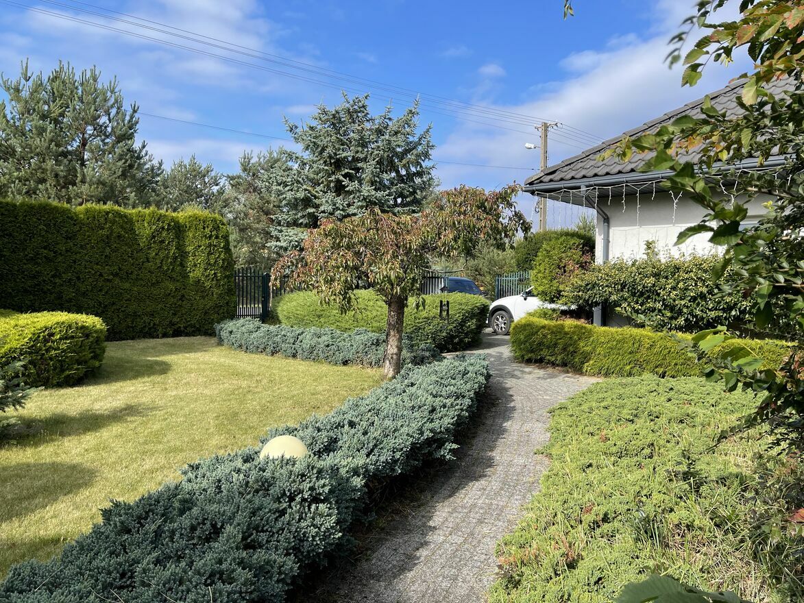 Na parterze mamy trzy pokoje w tym duży salon z kominkiem. Oddzielna kuchnia z ekspozycją na front budynku. Z salonu wychodzimy na zadaszony taras, mamy tu także grill ceramiczny na tarasie. Na oknach moskitiery, a okna wychodzą na piękny, zadbany ogród. Liczne nasadzenia, kwiaty, drzewa i krzewy. Ogród z rozprowadzonym nawodnieniem.