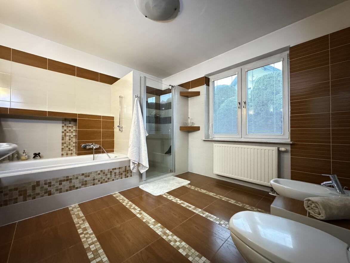 4/5 pokoi, oddzielna kuchnia, garaż na dwa samochody w bryle budynku